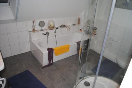 – Großes, helles Badezimmer mit Badewanne und Dusche